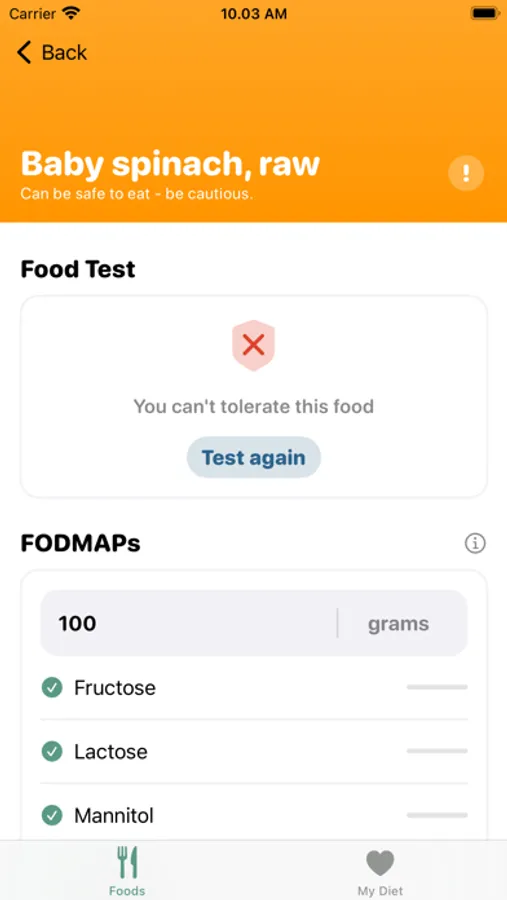 With our app you can also test new foods and drinks that haven't been tested yet and see if you tolerate it. Examples could be a can of Pepsi or ketchup which are both processed groceries with unknown levels of FODMAPs.