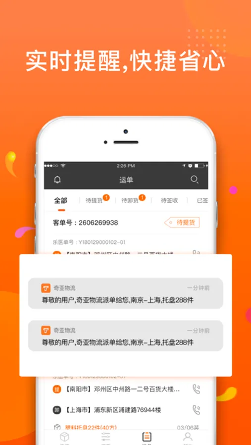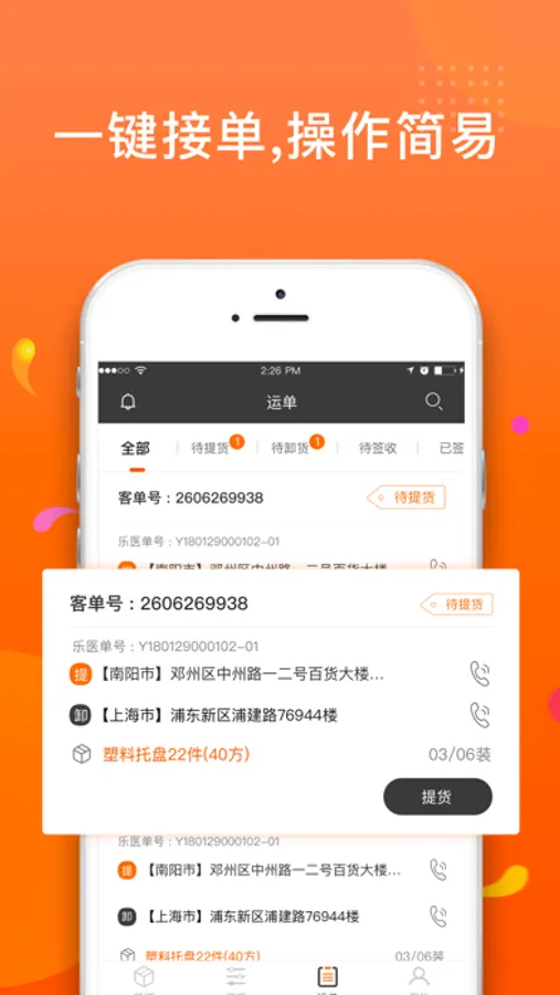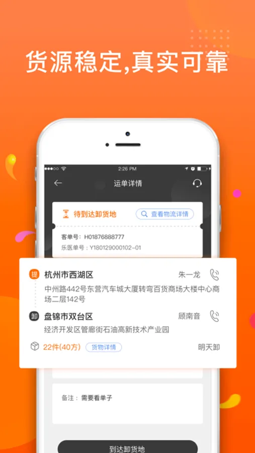 奇亚物流目前交易均为线下交易,调度派单给司机均为电话联系,同时提货函需要专门有一个现场调度在奇亚公司与司机之前穿梭传递提货函,运单跟进全部为线下联系,节点没有线上跟进,无法追踪货物情况。所以设置起亚物流司机版APP,系统将调度派给司机承运的运单展现在系统中,司机在App端可以看到提卸货地址信息,收发货联系人姓名及联系方式,司机可以在线点跟进运单的节点,保证运单数据有线上依据可循;
