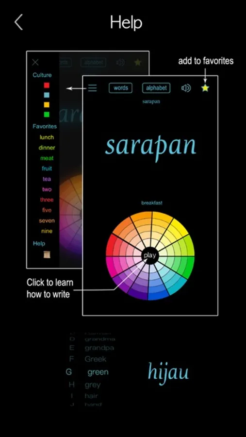 You can select the word in alphabetical order (English meanings) by clicking “words” in the menu bar. Basic everyday Malay words!