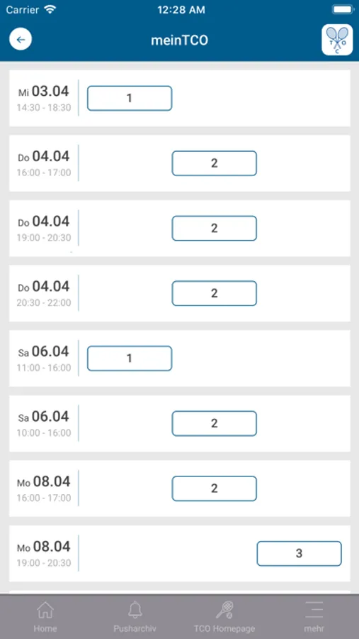 In der TC Oldenburg-Süd App findest Du folgende Informationen: