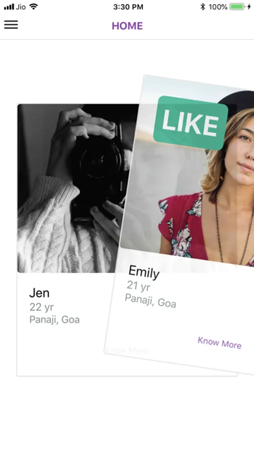 - View full profiles and photos of other people and swipe to aceept or reject.
