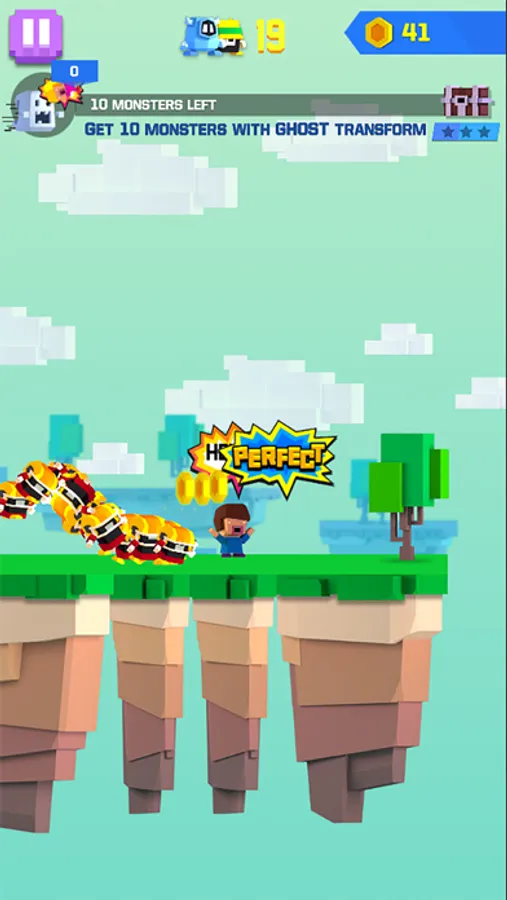 In Mon Rush, monsters are able to transform into a collection of monsters with special skills: Ghost, M-Rider, Ninja, Dragon, KinhKong, Midas,... and more! Collect coins to unlock these transformation skills. Each monster have different skills. Ninja can slash everything in front of him. Midas can make everything into coins. And Dragon, the ultimate form of monster, can squash everything under his feet! Remember to upgrade monsters skills to get better transformations.