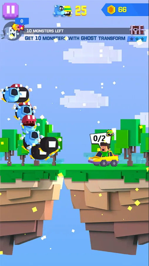 Mon Rush is fun to play! The human have prepared the bombs, cars, tanks, and even helicopters to fight our "mon". Destroy all and transform those human into monsters too.