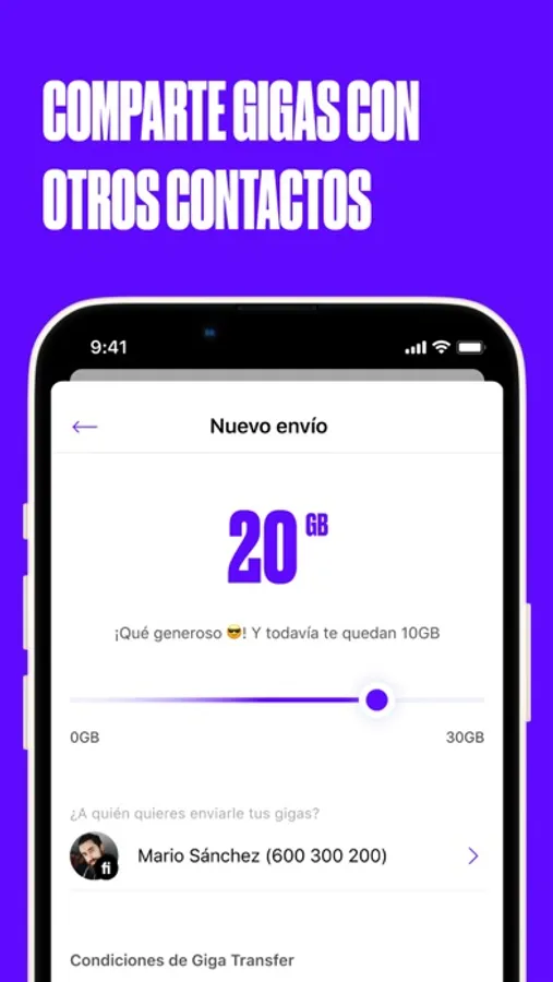 · Comparte y solicita gigas con otros contactos: lánzale gigas a tu amigo/a Finetwork desde nuestra APP de forma muy fácil y sencilla.