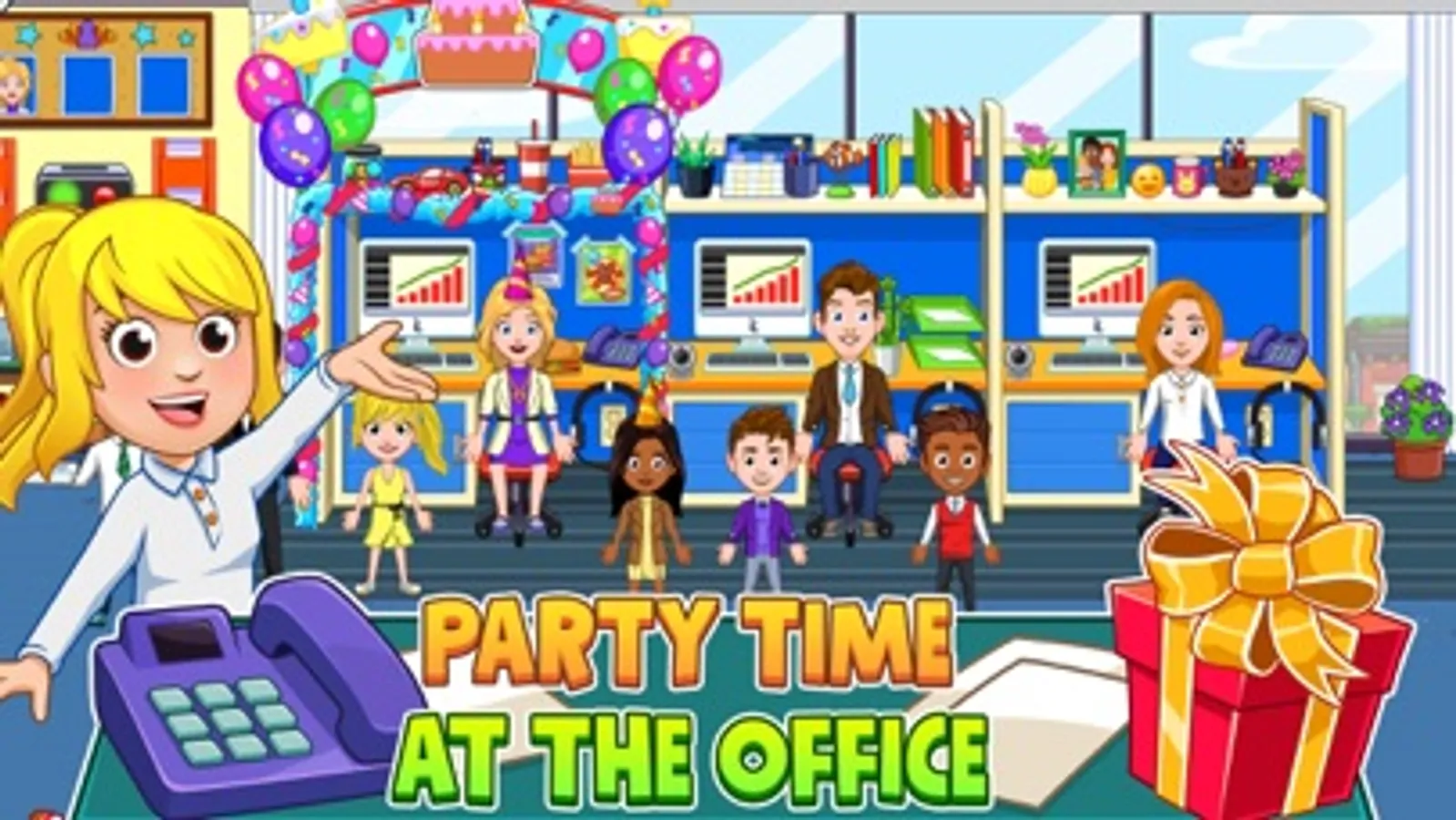 Do you want to discover what it is like to be an adult and work at an office? My City : Office is where you get to create your own office adventure. with one house that belongs to the Boss and four awesome locations to work at, Monday morning has never been so exciting! Hold important meetings, Who will get the employee of the month award? Would you like to work at the television station or perhaps at the Gym? Everything is possible in the new My City : Office !
