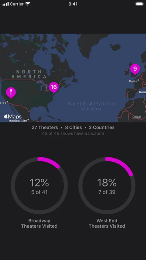 * View charts, maps and stats for all your theater visits.