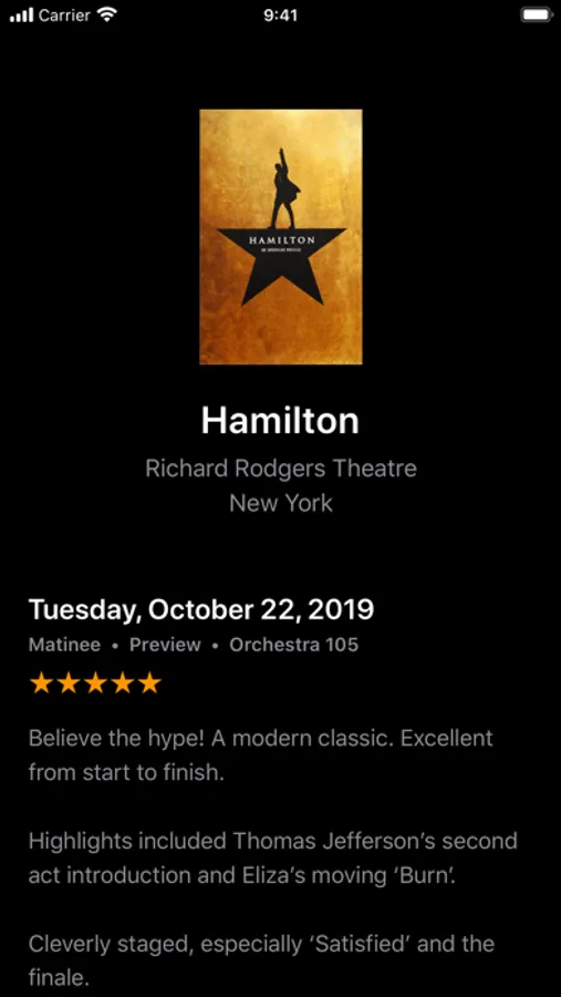 * Your entire theatergoing history at your fingertips.