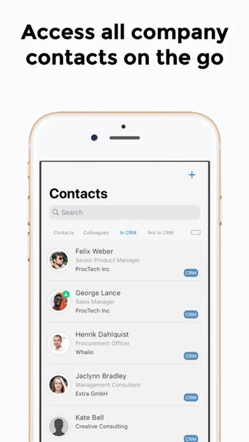 • Integrate with any platform used by your company and have not only contacts updated in your phonebook but also at the platform your entire company shares contacts on.