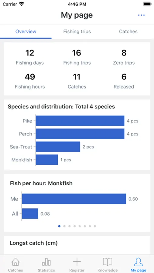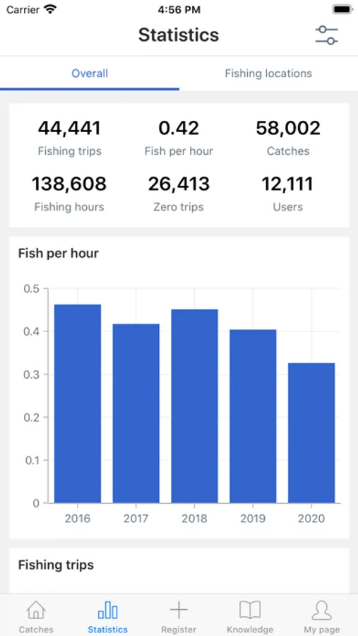 All catches and fishing trips are anonymous and your name will not be published in Fangstjournalen. The public statistics shown in Fangstjournalen is always based on several fishing trips and it's not possible to identify individual anglers. Your shared information will not be linked to your name; it will become part of a combined database. If you like, you can make your catch “public” and it will be displayed on the front page of the app. If you prefer, you can also choose to make your catch private. Then it's not included in any public statistics shown at Fangstjournalen, but is still available for research purposes.