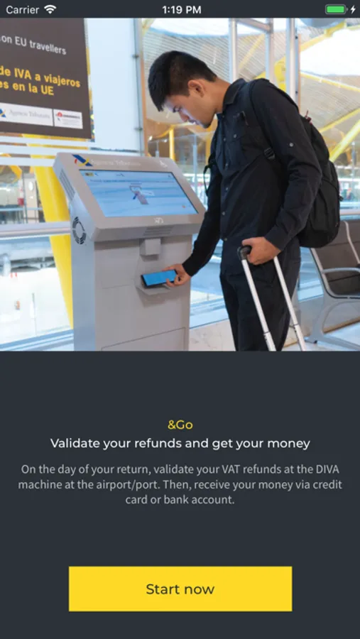 The day you are leaving the EU, before departure, locate the VAT validation machine in the port or airport (in Spain these are called “DIVA machines”), and pass the refund request code in your app in front of the reader in the machine. You may be asked to go show the purchased goods in the customs office to prove they are unused and you are bringing them with you, so have them ready.