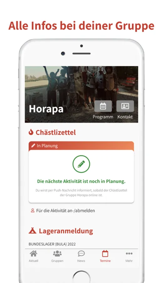 Mittels Push-Nachrichten erfährst du sofort, wenn der Chästlizettel oder die Lageranmeldung online ist.