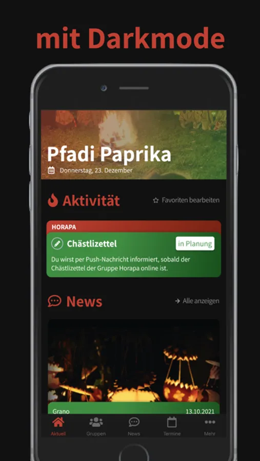 Mit der Pfadi Paprika App haben Eltern und Leiter immer die wichtigsten Informationen zur Hand.
