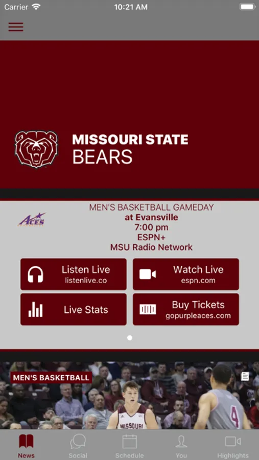 The official Missouri State Bears Athletics app is a must-have for fans headed to campus or following the Bears from afar. With interactive social media, and all the scores and stats surrounding the game, the Missouri State Bears Athletics app covers it all!