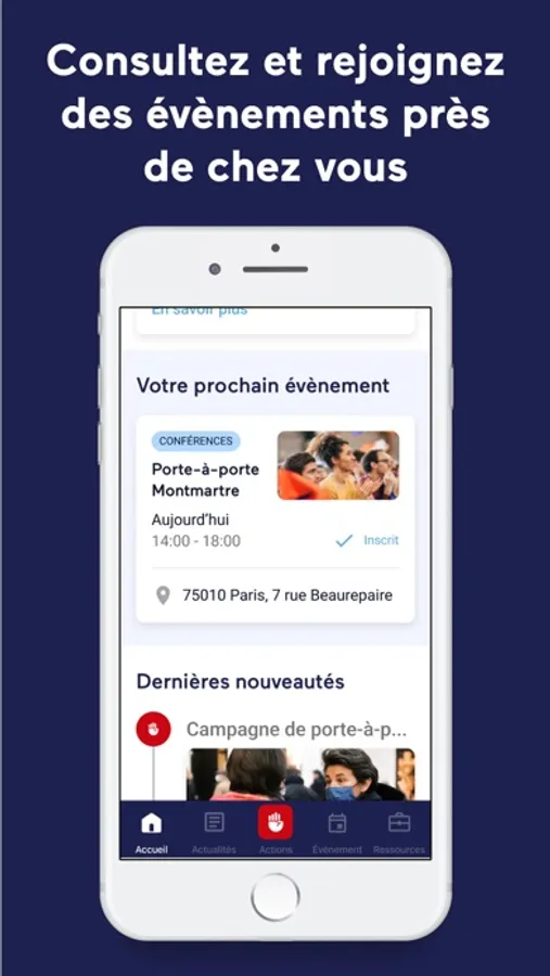 - Consulter et rejoindre les événements organisés près de chez soi ;