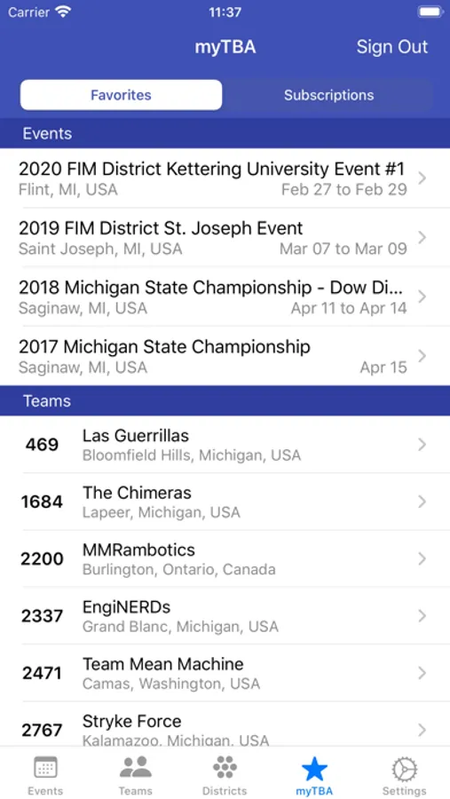 The Blue Alliance app is the easiest way to access all the great content on thebluealliance.com on your mobile device. You can keep up to date with live events, see what teams are competing when, or look back at the vast archive of historical match data and videos. The Blue Alliance app is the perfect companion for anybody looking to have the most up to date information about FRC competitions.