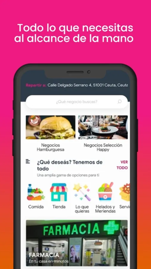 Pide de los mejores restaurantes, supermercados y tiendas de tu ciudad. En todo momento podrás ver el estado de tu pedido y dónde se encuentra tu Happy. ¿Sencillo y fácil eh?