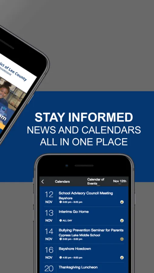 With the School District of Lee County mobile app, your school district comes alive with the touch of a button. Easily navigate through current news and events or check out the latest updates with. ly retrieve contact information, sporting scores, lunch menus, and more! It’s your school district available at your fingertips.
