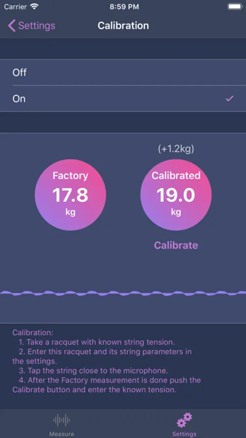 • TennisTension is the FIRST WORKING mobile app that instantly measures the momentous string tension of a tennis racquet with extreme consistency and accuracy. We, the developers, GUARANTEE full satisfaction if you trust and buy TennisTension. The error of the measurements is less than 0.2 kg. Tracks the TENSION LOSS. It records and analyzes the ringing sound heard from the strings when they are hit with a stiff object (pen, pencil, another racquet, fingernails etc.).