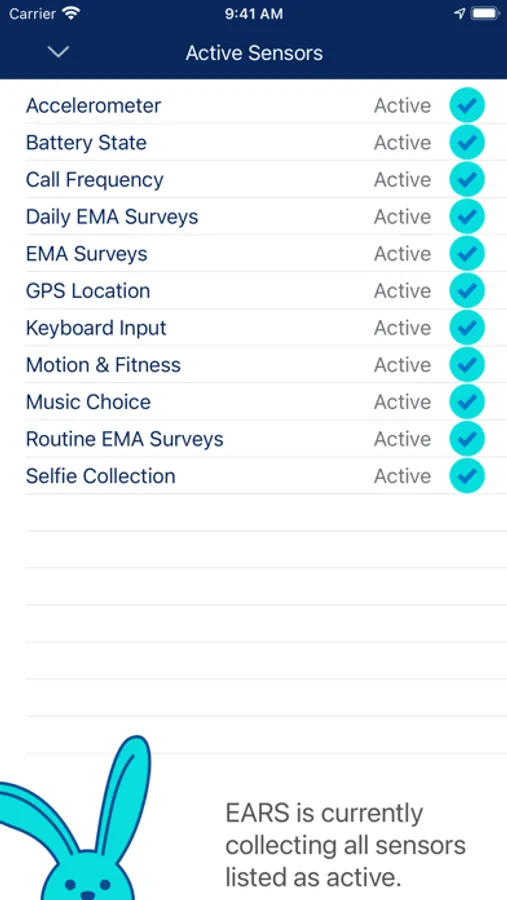 The Effortless Assessment Research System (EARS) is a behavioral research tool developed by Ksana Health. EARS is intended to be used by individuals who have consented to participate in one of EARS' ongoing research studies.