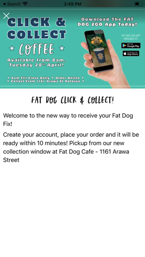 The Fat Dog 2 Go app will make the most of your in-store experience, allowing you to pay through your mobile via