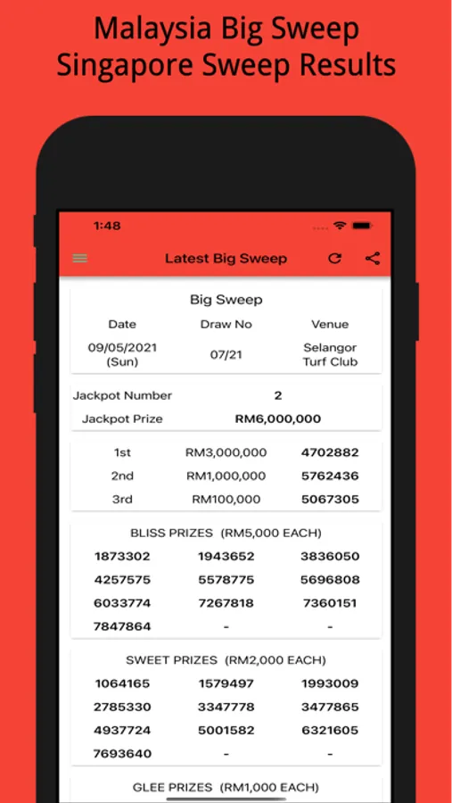 3. Latest Singapore Sweep Results