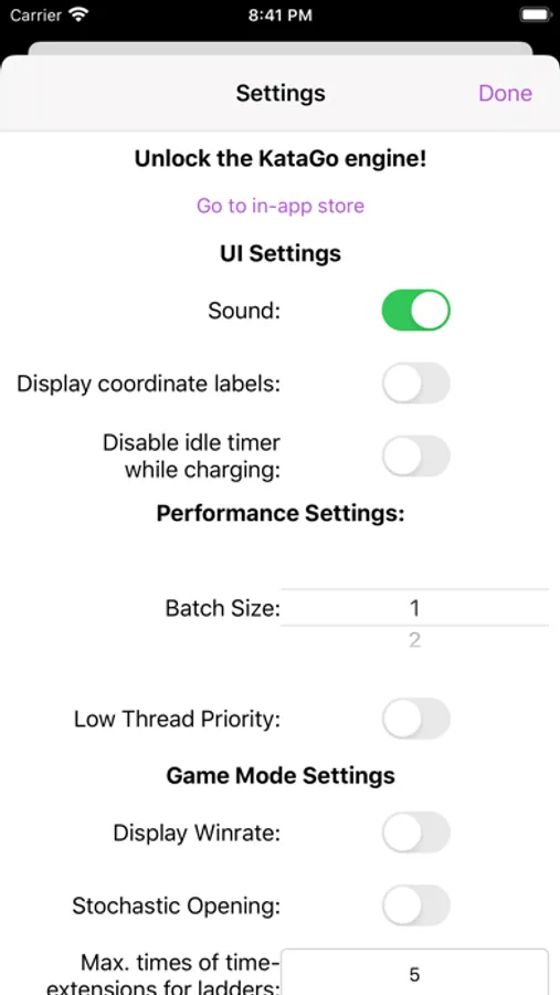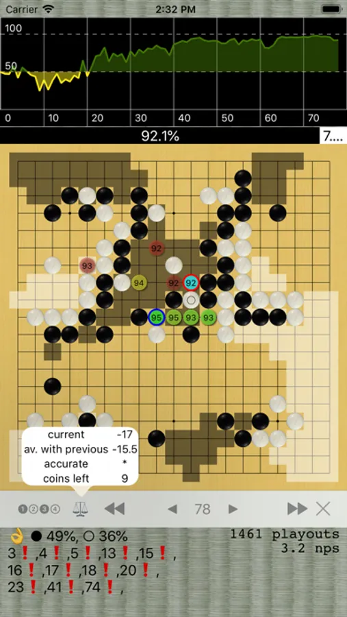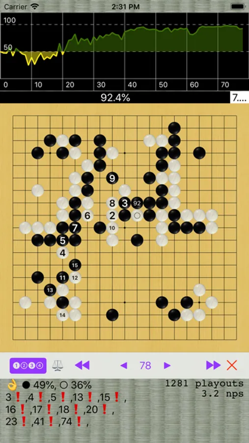 For your information, the playout speed on the iPad Pro 9.7 inch model(A9X processor) will be about 10 times per second, and the one on the iPhone 6(A8 processor) will be about 1 time per second. I think that even so it is stronger than most amateurs, but I am sorry that patterns of misreading ladders will increase.