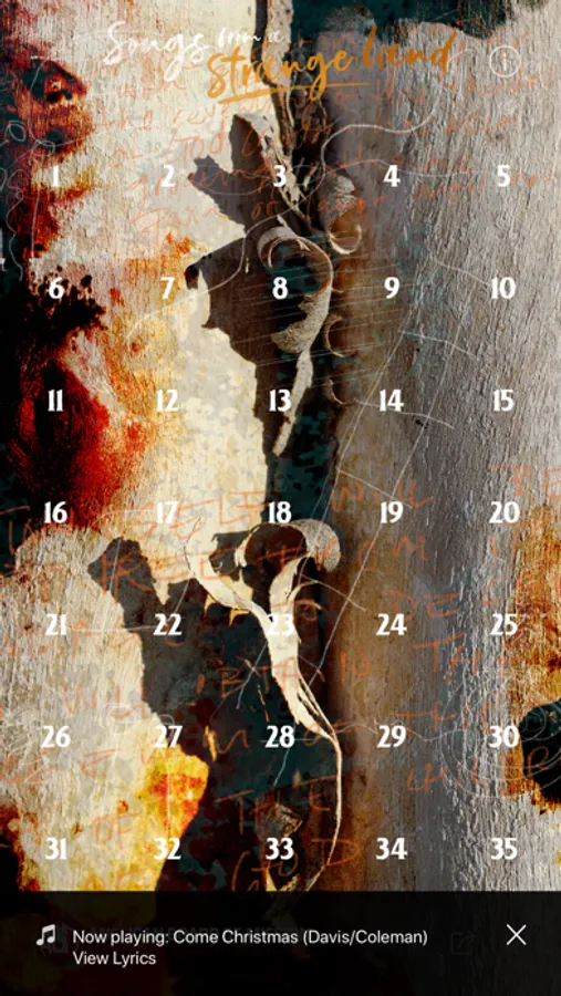 Songs from a Strange land starts on 1 December and takes you through Advent and Christmas, ending on the Feast of Epiphany, January 6.