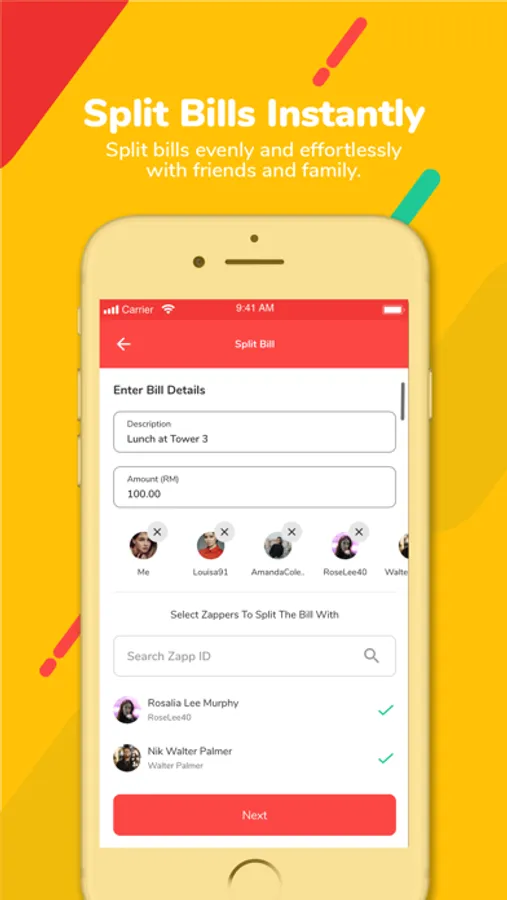 Split the bill instantly with Zapp by doing it the cashless way. Enter the amount, add your friends or family and we’ll do the rest evenly and instantly for you.