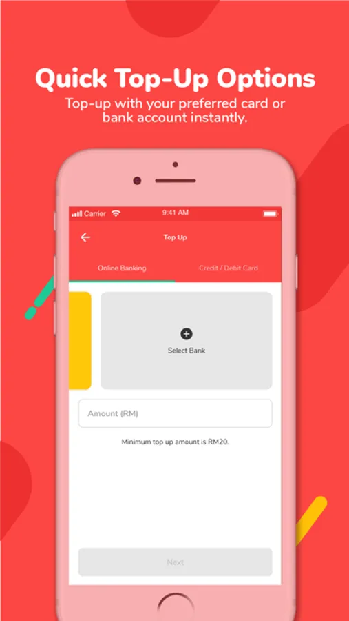 Top-up your e-wallet instantly by card or your preferred bank account and request or transfer funds in just a few simple taps.
