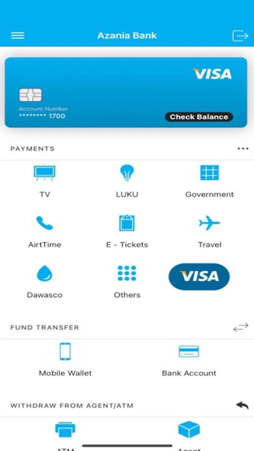 Azania Bank Mobile App provides several Services to their Customers, below are some :