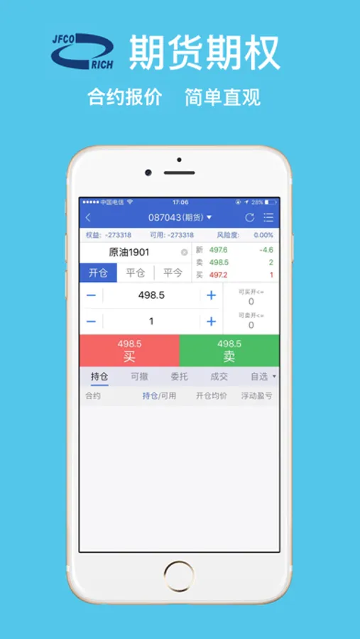 江西瑞奇期货有限公司发布的免费期货期权手机交易软件端,包含开户、热线、资讯、行情、交易、云条件单等多种功能,提供给客户更便捷的使用体验。