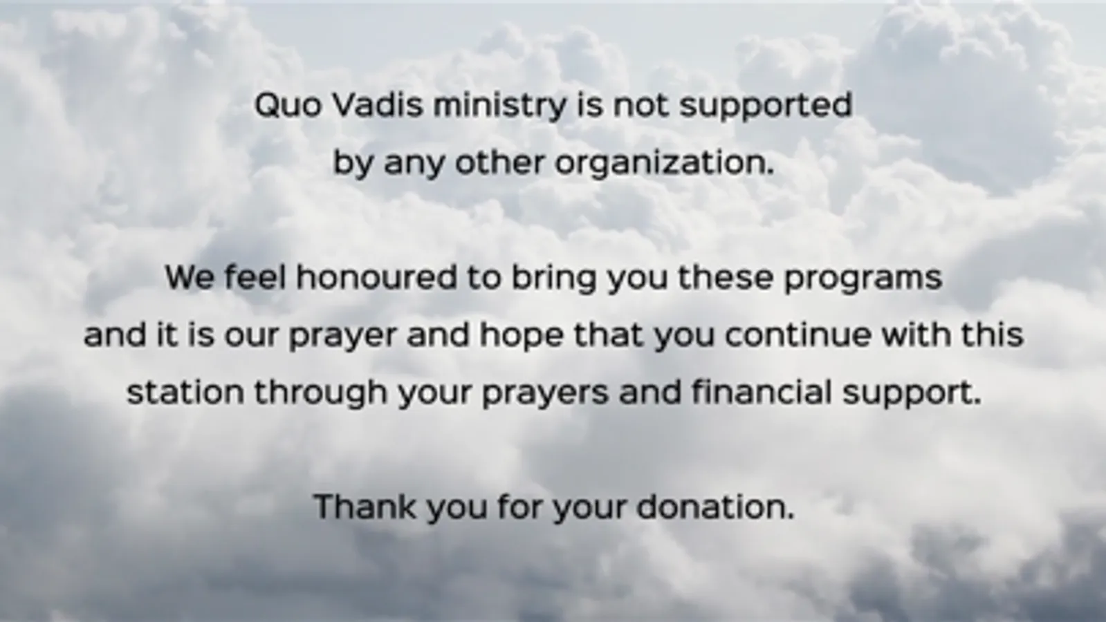 QUO VADIS is a non-profit devoted to spreading the Gospel of Jesus Christ, usually in the form of short, powerful sermons and talks. Visit us at http://www.quovadisministry.org