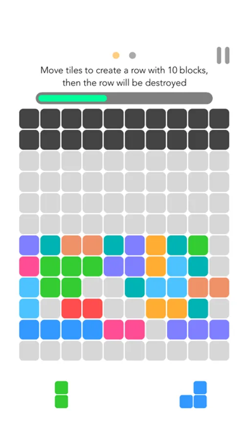 Falling black blocks increase the difficulty of the game, you need to clear the black blocks continuously, otherwise, you will lose the game!
