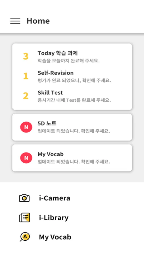 오늘 해야 할 학습과제/ Self-Revision/ Skill Test의 정보를 한 눈에 볼 수 있습니다.