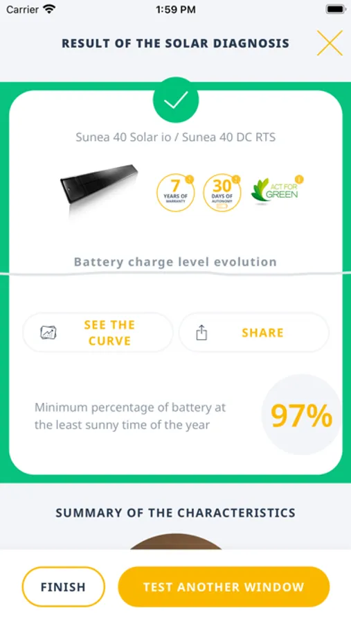 N.B : The results provided by the App take into account the technical properties of the complete Somfy system only (motor, solar panel and battery). Please check with your manufacturer that all components are provided by Somfy.
