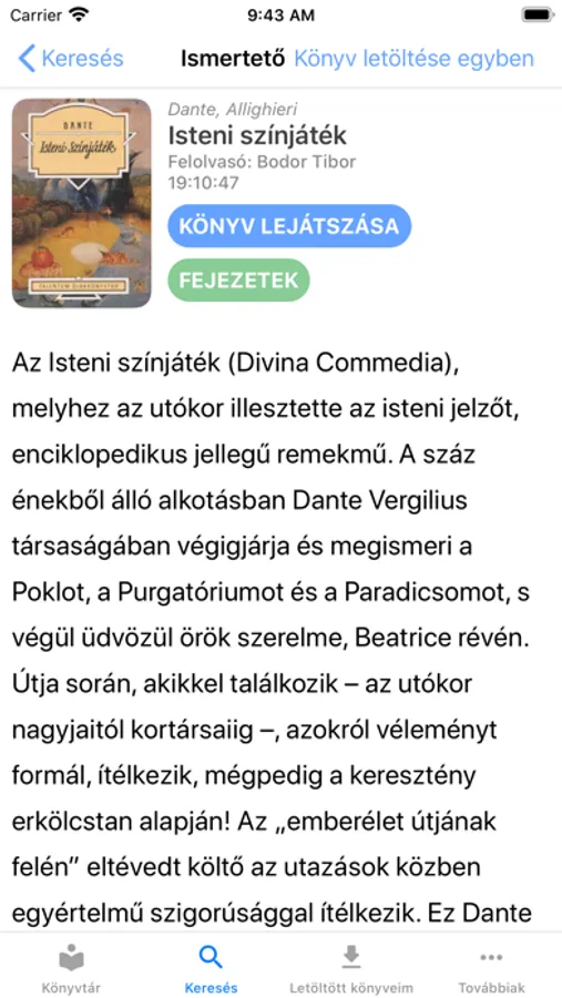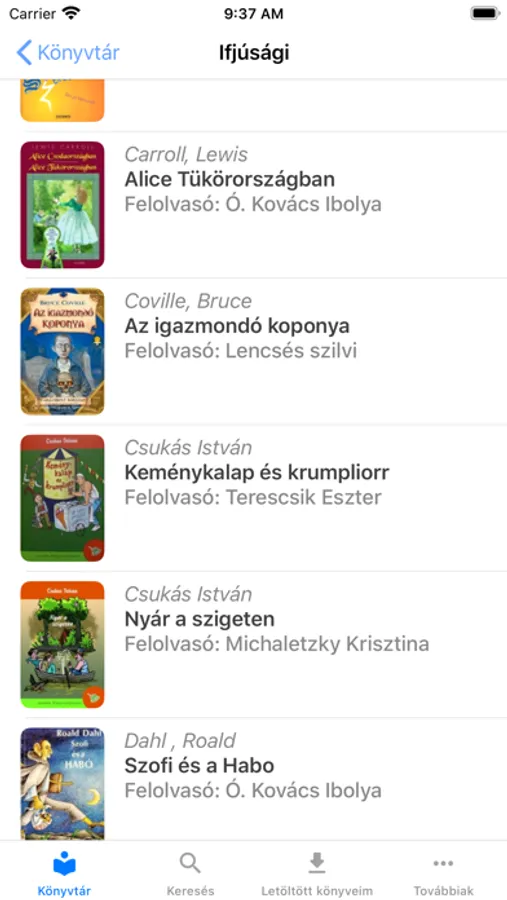 Az alkalmazásban a könyvek kereshetők kategóriák, felolvasók, szerzők és a művek címei alapján. A hangoskönyvek hallgatásához a zenelejátszókéhoz hasonló kezelőfelületet kell használni.