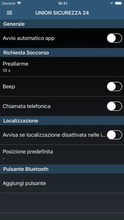 In caso di pericolo è possibile inviare, mediante la pressione di un apposito tasto sulla app o tramite un pulsante bluetooth, una richiesta di aiuto ad una Centrale di Vigilanza con sistema gestionale MvsNET (SICEP) con le relative coordinate geografiche per garantire un tempestivo intervento di soccorso.