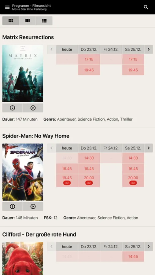 Hier kaufst Du in unter einer Minute Kinotickets für Deinen Lieblingsfilm. Schnell, sicher, einfach und ohne Anstehen an der Kinokasse. Einfach aus dem aktuellen Kinoprogramm Deinen Film buchen und Du erhältst die Tickets einfach & bequem als E-Ticket auf Dein Smartphone und an Deine E-Mail-Adresse.