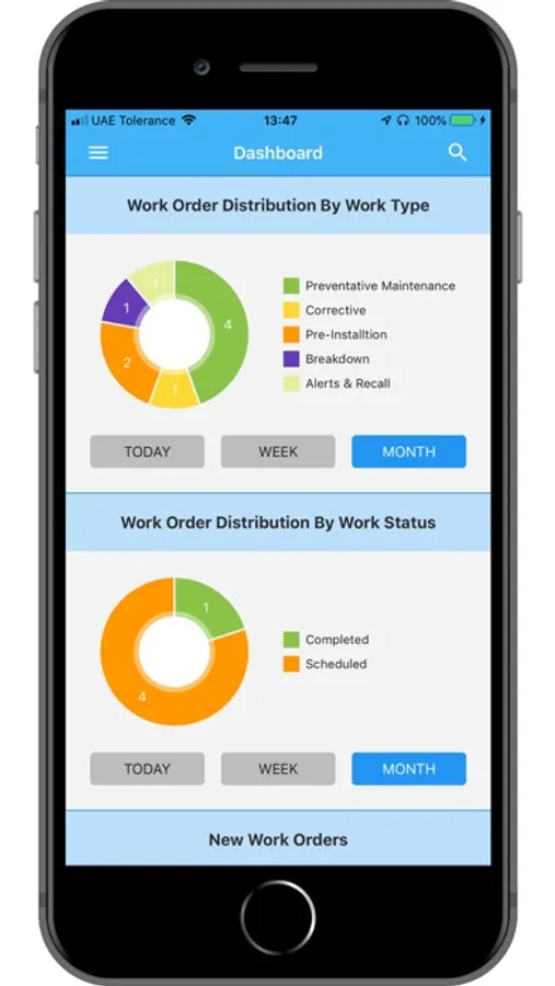 • Track multiple KPIs such as pending Work Requests, Work Order backlogs, Purchase Requests etc.