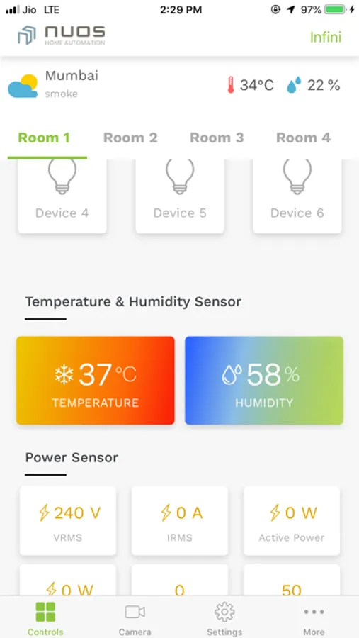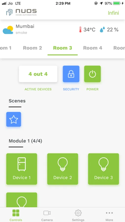 • The app also allows viewing the live feed of the IP cameras which have been already setup in the house making it a one stop shop for controlling, viewing and accessing all your home appliances.