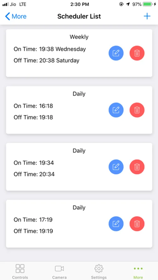 • The devices/loads can be scheduled to automatically turn on and off at particular times in a day as weekly or as daily alarms.