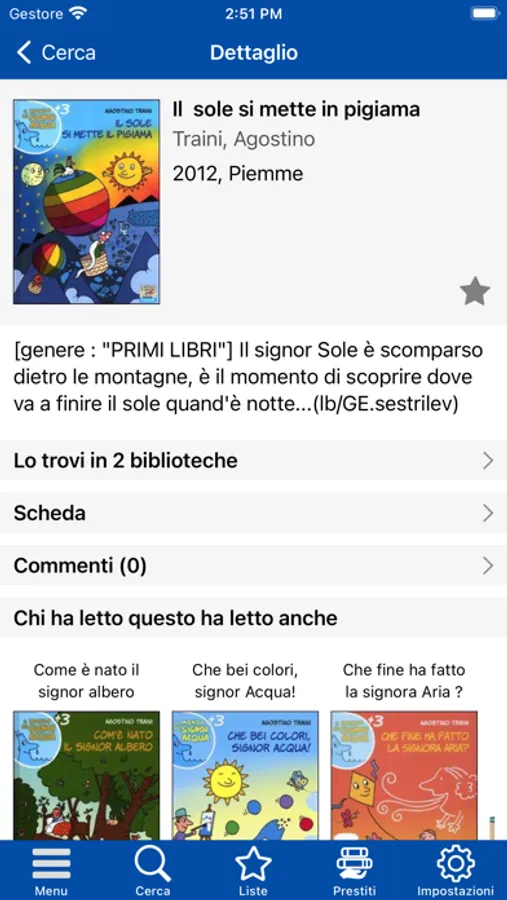 - in evidenza il materiale posseduto dalle biblioteche preferite