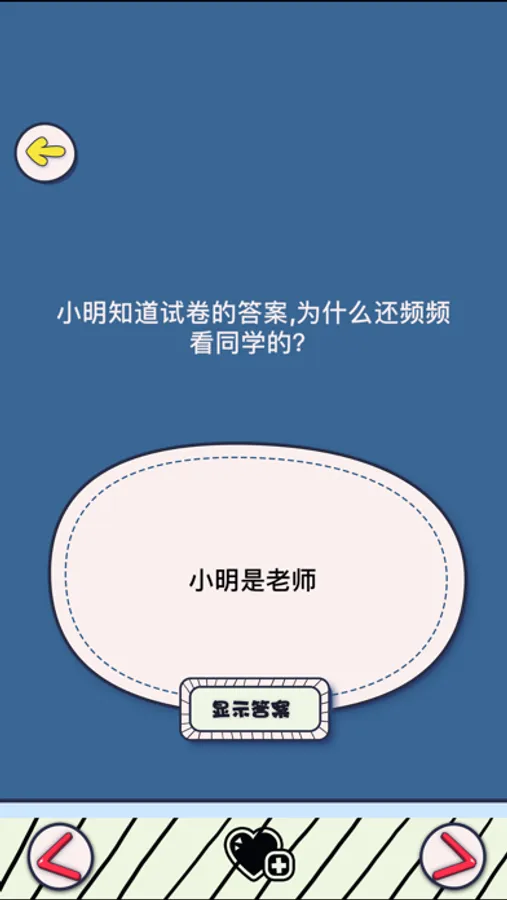 和家人、朋友来一起来脑筋急转弯答题吧,随着答题量的增加,你的IQ也会不断提升哦,快来比比看谁的IQ更高吧~
