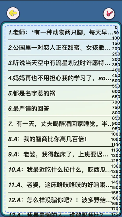 这是一个脑筋急转弯和笑话的合集,史上最全的脑筋急转、笑话合集!成千的脑筋急转弯和笑话段子等你来挑战!