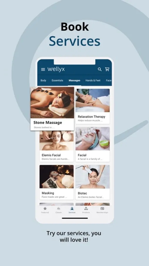 Wellyx will connect you to your Gym, Club or Salon. You can book classes buy treatments, products & memberships. You can check payments made, and view invoices and bookings.