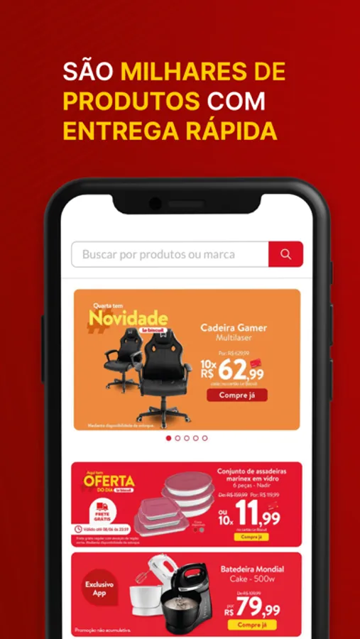 Procurando as melhores ofertas para comprar tudo que sua casa precisa? No app da Le Biscuit você encontra o melhor em itens de decoração, eletroportáteis, eletrodomésticos, utensílios de cozinha e muito mais! E sabe o melhor? Você pode parcelar tudo em até 12x Sem Juros* no cartão Le Biscuit e ainda conta com cupons de descontos incríveis. Baixe o app e vem conferir!