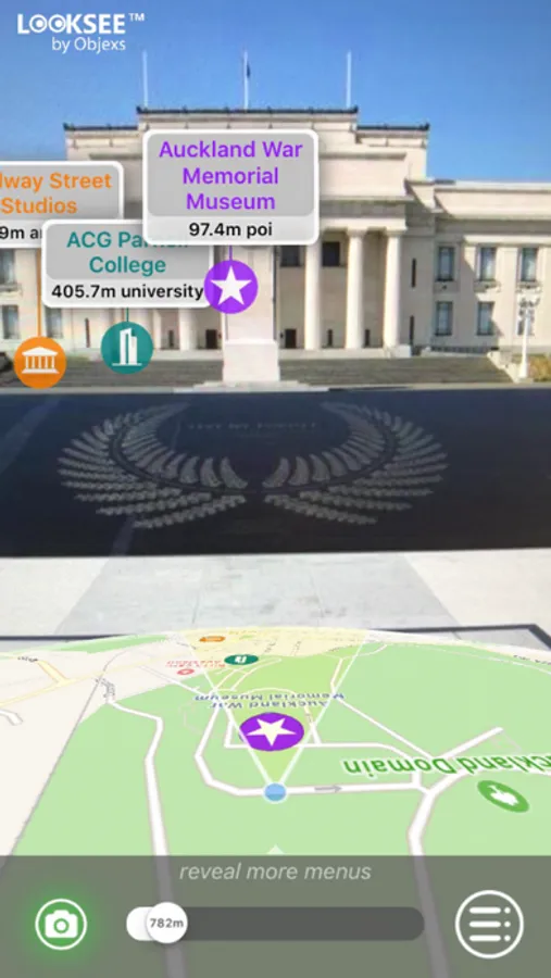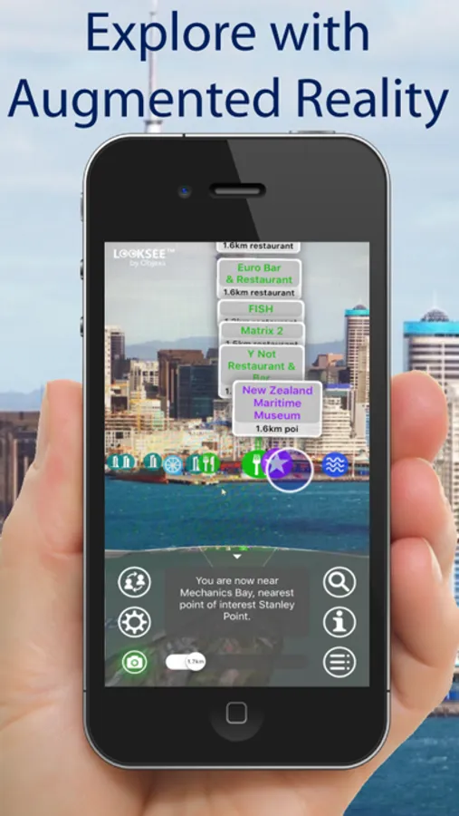 Looksee AR for Auckland, North Island, New Zealand, is an Augmented Reality (AR) viewer used to find places of interest upto 10km away directly within your phone's camera view and add fun, knowledge and interest to your adventures and tours.