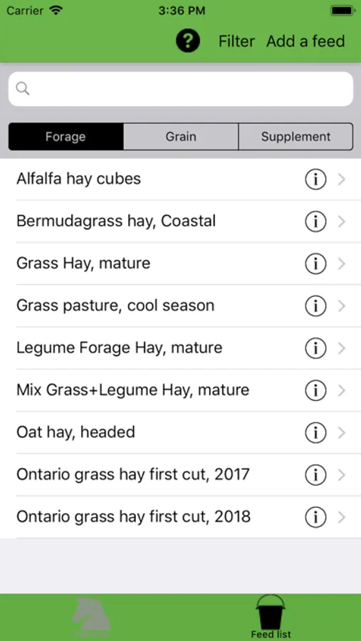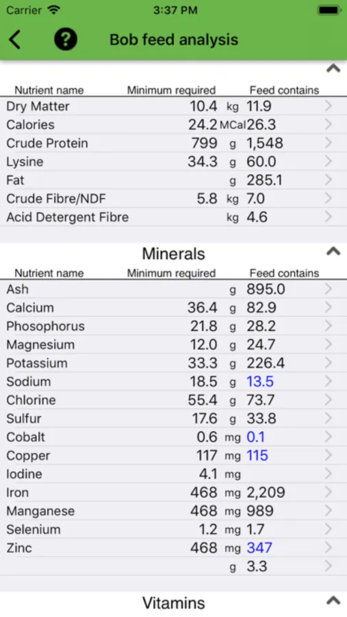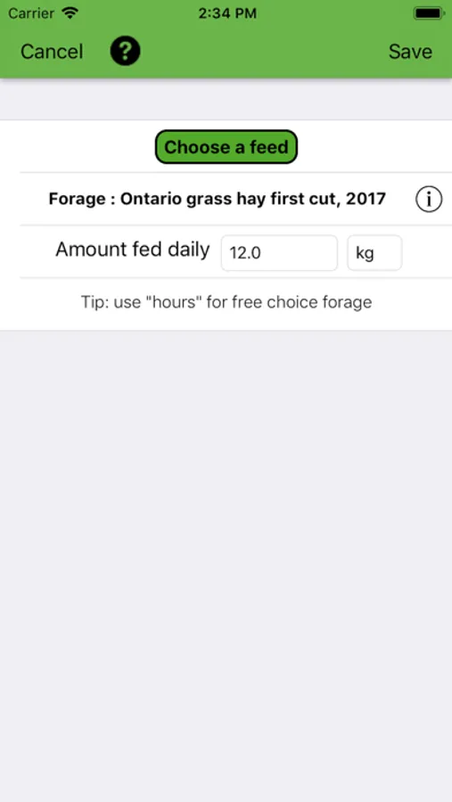 This app allows allows you to enter your horse's feeding information, then provides an analysis of the nutrients in the feed ration.