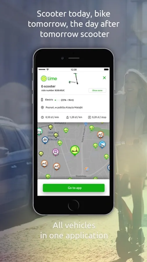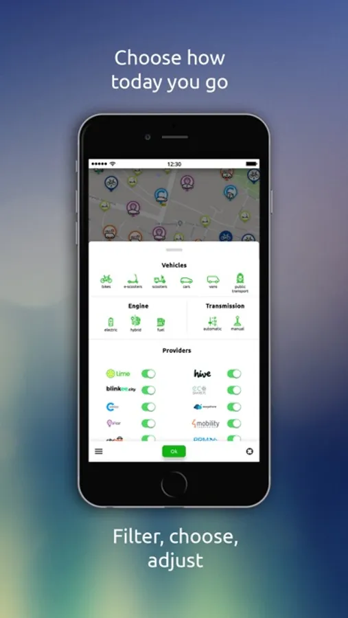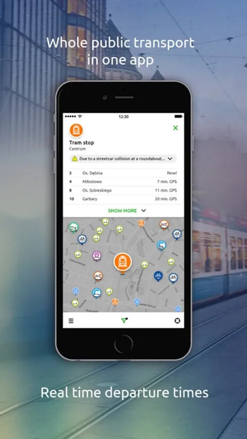 Take&drive shows you all shared vehicles (carsharing, scooters, e-scooters and bikes) on one map. You can also check real time departures of buses and trams (the feature works in 23 cities!).