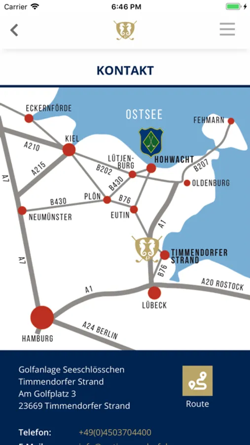Zwei der schönsten Golfanlagen im echten Norden vereint in einer App! Mit der neuen App der Golfanlage Seeschlösschen und Golfanlage Hohwacht haben Sie die Möglichkeit Ihren Lieblingssport ganz gemütlich von zu Hause aus zu organisieren. Erhalten Sie aktuelle Information zu Ihrem Lieblingsplatz direkt auf das Smartphone und buchen und verwalten Sie nun ganz einfach Ihre Tee Times, Turniere und Tischreservierungen im Restaurant von unterwegs. Der perfekte Begleiter für Mitglieder und Gäste der beiden, an der Ostsee gelegenen, Golfanlagen in Schleswig-Holstein.